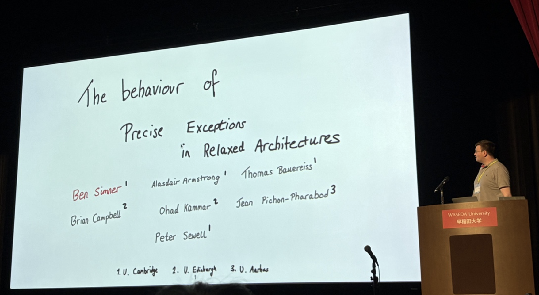来自剑桥大学、爱丁堡大学、奥胡斯大学等顶尖学术机构的研究团队凭借论文“Precise exceptions in relaxed architectures” 荣获最佳论文奖。该研究针对现代高性能处理器架构中的一个核心挑战——如何在松散内存模型环境中准确定义和处理异常。